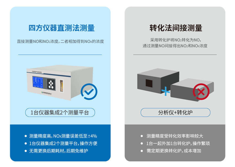 對于新建立的在用車尾氣排放檢測站,大多采用轉(zhuǎn)化爐法進(jìn)行氣體測量,即利用轉(zhuǎn)化爐將NO2轉(zhuǎn)化為NO,通過測量NO間接得出NO2和NOx的濃度。此方法具有一定缺陷:首先,測量精度受轉(zhuǎn)化效率影響較大;其次,一臺儀器加一臺轉(zhuǎn)化爐操作繁瑣,且需定期更換轉(zhuǎn)化爐導(dǎo)致成本增加。