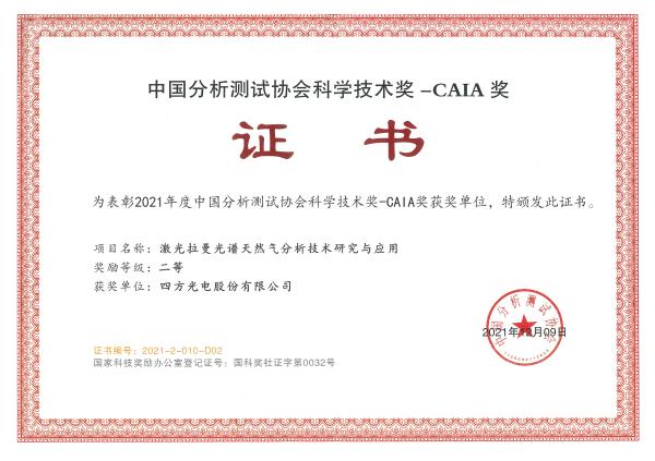 近日,中國分析測試協(xié)會頒發(fā)了2021年度中國分析測試協(xié)會科學技術獎(CAIA獎)獲獎證書,四方光電申報的“激光拉曼光譜天然氣分析技術研究與應用”項目榮獲二等獎!
