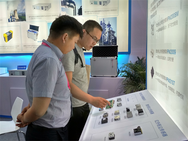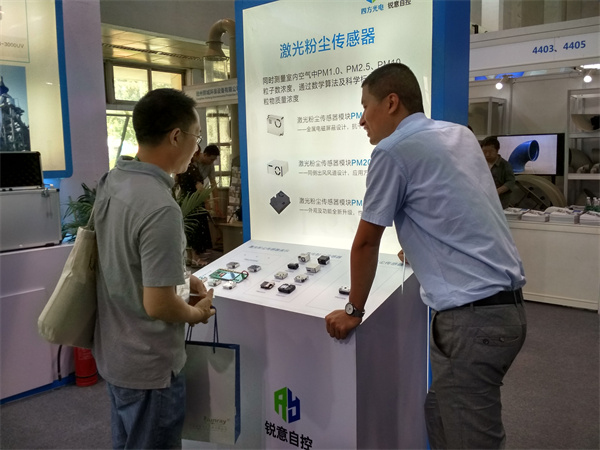 四方光電旗下產(chǎn)品激光粉塵傳感器模塊PM2008M、PM2009、PM2017可同時測量室內(nèi)空氣中PM1.0、PM2.5、PM10粒子數(shù)濃度,通過數(shù)學(xué)算法及科學(xué)標(biāo)定輸出顆粒物質(zhì)量濃度,在本次展會中PM2008M通過工裝板進行演示并實時輸出數(shù)據(jù),吸引了眾多專業(yè)觀眾參觀咨詢。