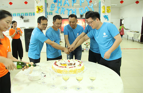 同舟共濟(jì),感恩同行!觥籌交錯(cuò),舉杯暢飲!最后,公司總經(jīng)理劉志強(qiáng)先生、董事長(zhǎng)熊友輝博士及公司高層切蛋糕、開香檳,與全體員工舉杯共祝四方光電十五歲生日快樂!一片歡聲笑語中,四方光電十五周年慶典完美落幕!