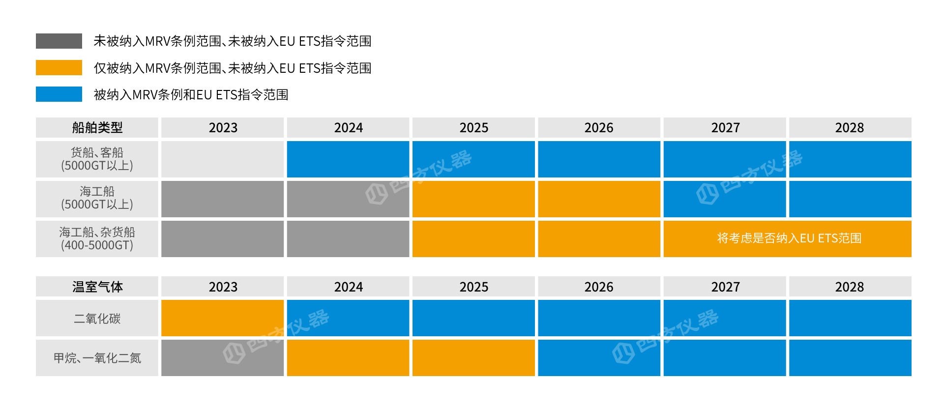 2023年5月,歐盟委員會發(fā)布了《歐盟排放交易體系(EUETS)指令》(EU2023/959)和《歐盟MRV法規(guī)》(EU2023/957)的最終修訂文本。規(guī)定從2025年開始,在歐盟成員國領(lǐng)海運營的航運公司必須根據(jù)以上法規(guī)與指令量化核實碳排放量,為超過5000總噸的船舶繳納碳配額。從2026年1月1日,歐盟碳排放交易體系將從CO2擴展到包括CH4和N2O排放。