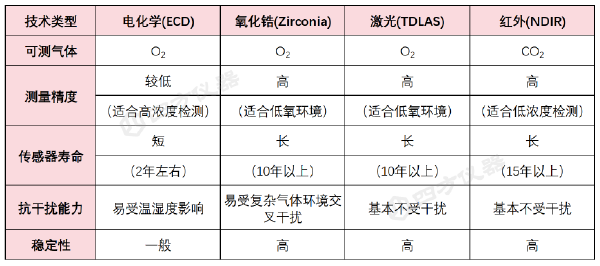 頂空氣體檢測(cè)設(shè)備根據(jù)其性能和形態(tài),主要分為便攜手持式、臺(tái)式和在線式三種類型,分別適用于現(xiàn)場(chǎng)快速檢測(cè)、實(shí)驗(yàn)室精確檢測(cè)以及大規(guī)模產(chǎn)線自動(dòng)化檢測(cè)等不同場(chǎng)景。目前,常見的頂空氣體檢測(cè)技術(shù)主要包括電化學(xué)技術(shù)(ECD)、氧化鋯技術(shù)(Zirconia)、激光技術(shù)(TDLAS)和紅外吸收光譜技術(shù)(NDIR),這幾類技術(shù)各有特點(diǎn):