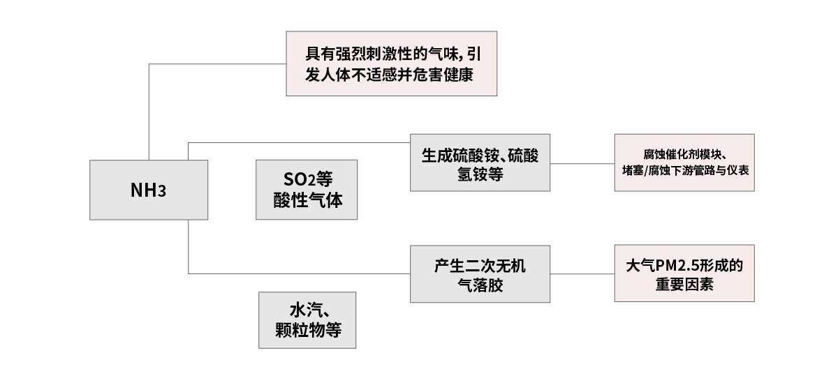 在工業(yè)脫硝中,氨逃逸是指未反應(yīng)的氨隨煙氣排放到大氣的現(xiàn)象。為滿足嚴(yán)格的氮氧化物排放標(biāo)準(zhǔn),企業(yè)常采用“過量噴氨”策略,導(dǎo)致氨逃逸率上升。我國(guó)現(xiàn)行大氣氨排放標(biāo)準(zhǔn)有11個(gè),限值范圍為8-30mg/m3。2024年1月,水泥和焦化行業(yè)超低排放意見發(fā)布,新增氨污染自動(dòng)監(jiān)測(cè)要求。若企業(yè)廢氣氨濃度超標(biāo),將面臨罰款、關(guān)停、約談等處罰。
