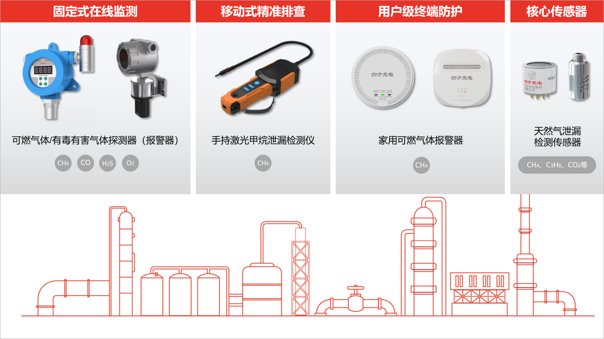 本方案依托我司自主研發(fā)的紅外與激光傳感器技術(shù),向下游延伸出覆蓋工業(yè)、巡檢、家用三大場景的氣體監(jiān)測產(chǎn)品矩陣,形成從“感知核心”到“終端預(yù)警”的完整鏈條。