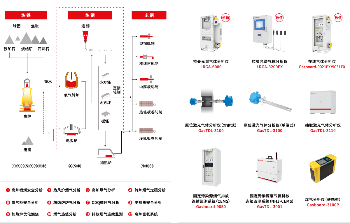 四方儀器憑借其先進(jìn)的氣體傳感器技術(shù)和豐富的工業(yè)監(jiān)測(cè)設(shè)備開發(fā)經(jīng)驗(yàn),針對(duì)鋼鐵行業(yè)精心打造了一套融合多種氣體傳感器技術(shù)的氣體監(jiān)測(cè)綜合解決方案,實(shí)現(xiàn)了對(duì)鋼鐵冶煉全流程(煉鐵、煉鋼、軋鋼等)的氣體監(jiān)測(cè),精準(zhǔn)測(cè)量煤氣熱值、爐膛內(nèi)關(guān)鍵指標(biāo)以及環(huán)保限制因子等重要參數(shù),可有效評(píng)價(jià)爐內(nèi)燃燒狀態(tài),合理調(diào)節(jié)各種爐型的熱工參數(shù),從而助力鋼鐵行業(yè)的節(jié)能減排行動(dòng)。