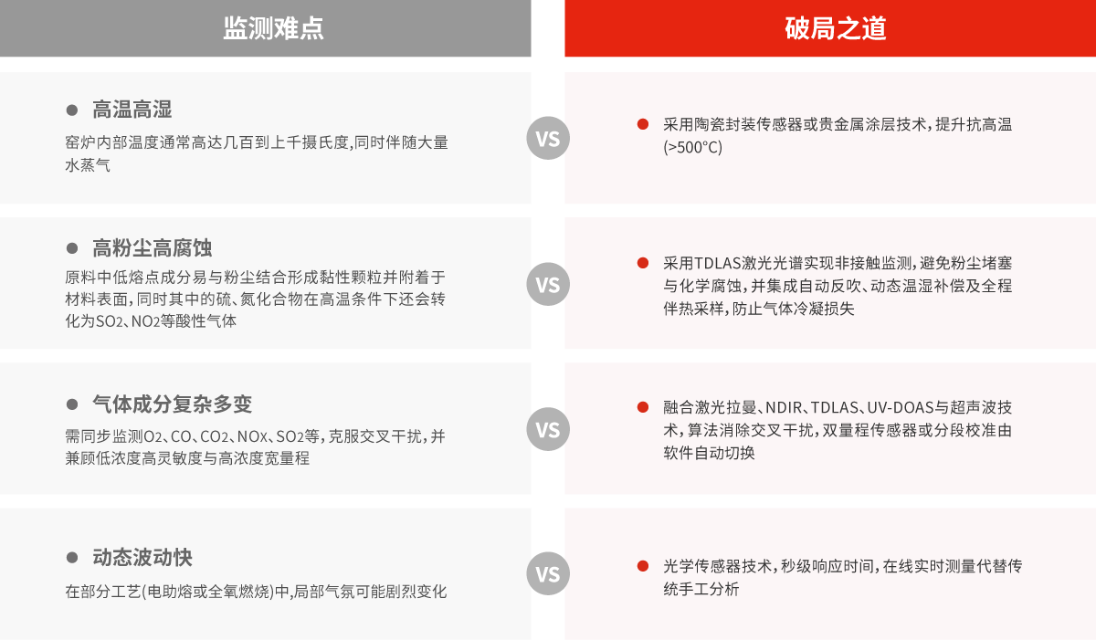 面對工業(yè)窯爐燃燒過程中高溫高濕、高腐蝕、高粉塵及氣體交叉干擾等嚴(yán)峻挑戰(zhàn),四方光電(武漢)儀器有限公司依托自主先進(jìn)技術(shù)與創(chuàng)新方案,一舉突破傳統(tǒng)監(jiān)測瓶頸,為工業(yè)窯爐提供高效、精準(zhǔn)、可靠的氣體監(jiān)測破局之道。