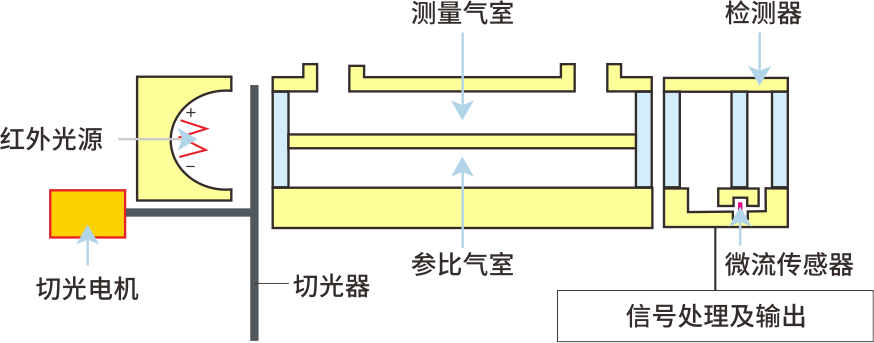 | 雙光束紅外傳感技術(Dual beam NDIR):CO2(高量程)及CO(中高量程) | ||